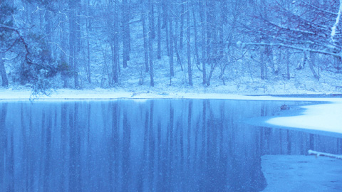 狙い通り池の半分にはまだ森の木が反映していた。今夜にも全面結氷するかもしれない。