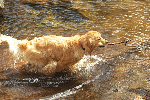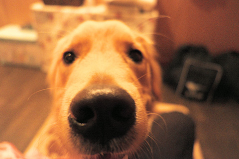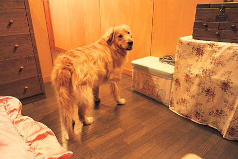 どちらも咥えて持ってはくるが勝手に食べることはしない。…1才でもやはりゴールデンだ。