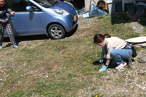 ボクが出かけている間,リコとなつは母に頼まれてしらべ荘のタンポポ退治に励んだ。