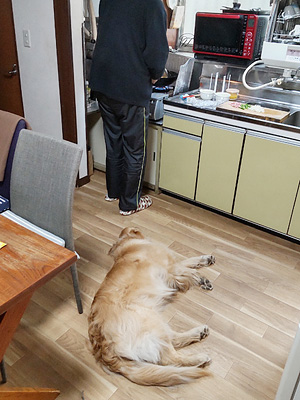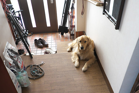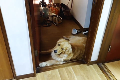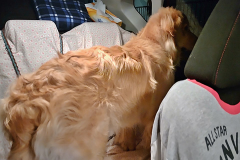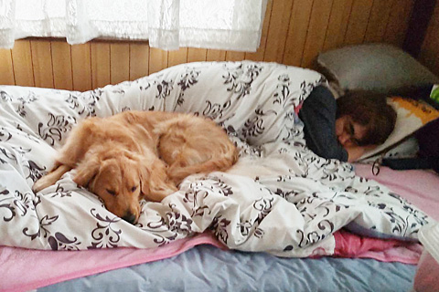 とてもゴールデンが一緒に寝るのは無理だ。何度も登ってくるのをようやくベッド脇のハウスに追い落として電灯を消した。