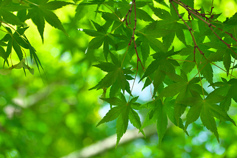 葉の前ボケ越しにヘビイチゴとカタバミと両方にピンを合わせようと夢中になっていると…