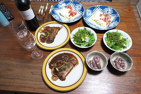 昨日からラム酒に付け込んであった豚ロースと塩漬けの豆腐。ホタルイカの酢味噌。