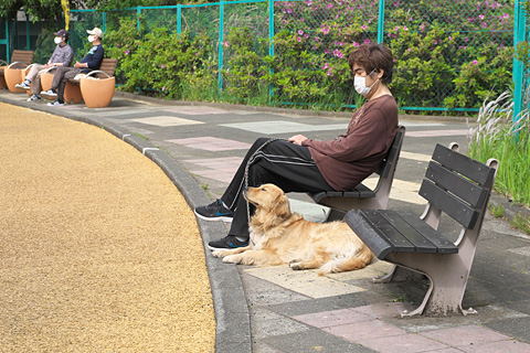愛犬を連れたお年寄りの風情を醸し出す。今日もループと一周走ってばてている。