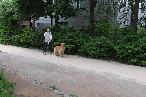 庭では意地でもワントゥしなくなった。ここでしなければ遊歩道まで出てもらえることを早くも察知した。