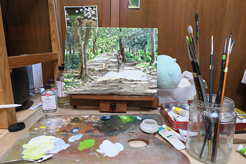 強い木漏れ日を描こうと思ってチタニウムホワイトを生で使ったら強すぎた(;^_^A