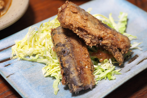昨日味噌漬けにしたサンマの竜田揚げ。