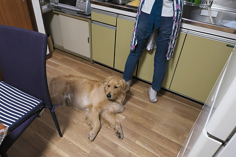 食事の支度を始めるとなおみにべったり。自分の餌を要求している。