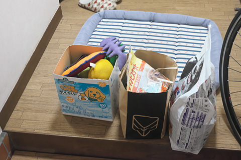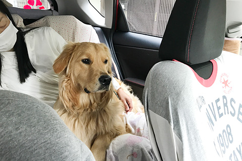 ループの持ち物を車に積む。