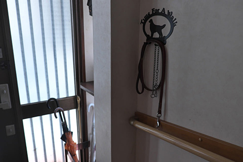 玄関のリードと首輪