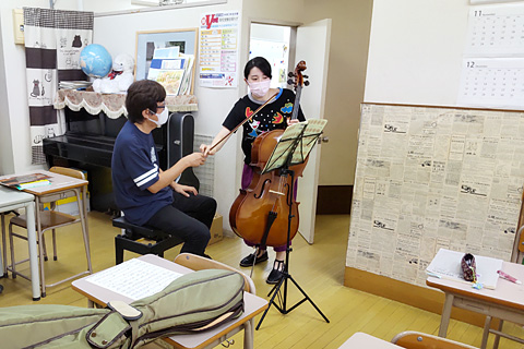 チェロにはまるほど楽しんだなおみは卒業して,今月からボクが直接指導してもらうことになった。