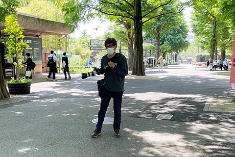 正門からいちばん遠くの西園にあるパンダの森。必死に歩いてすでに腰が逝ってしまった。母よりボクに車椅子が必要である。5Dに70-200mmを装着。