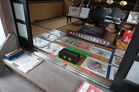 その中にボクの殿絵,鎌倉絵が展示されている。裏山の反対側は北条の里,隣りには北条時政ゆかりの願成就院がある。西伊豆にお出での際は,ぜひぜひ眞珠院に立ち寄られたし。この日も新作三枚を奉納して来たので,新たに展示に加わると思われる。