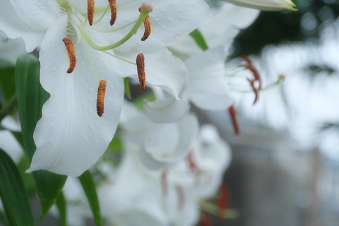 苑内には夫人が丹精したカサブランカがたくさん咲いている。