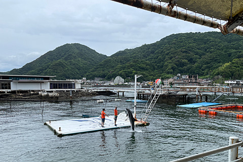 漁港ではない。イルカショー会場である。