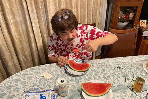 23時に町田に寄った。日中,義母が庭を大量に整理している途中で気分が悪くなってしまった。明日が月に二回しかない庭木のゴミ出し日なので,暗がりの中で草や枝を集め,10束近くも紐でくくった。働いた。働いた。スイカは三島で持たされたもの。