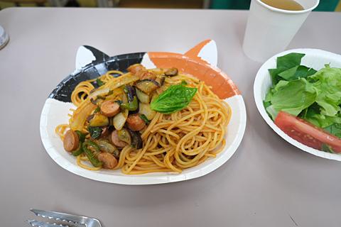 夕飯は原村産バジルをふんだんに使った天才ナポリタン。