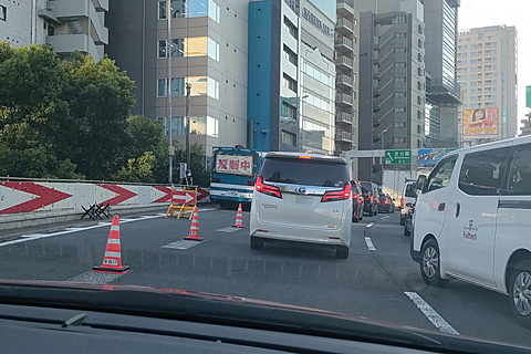 全く進まないので芝公園から流出すると幹線道路で装甲車が車線を塞いでいて一般道も大渋滞。