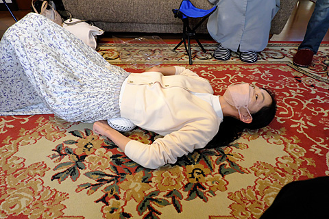 目の手術の術後経過は良好。毎日なおみに送り迎えしてもらい,仰向けになりながら洗髪もしてもらっている。