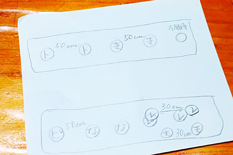 このあたりがレレレのおじさんのところ。メジャーで間隔が測られている。