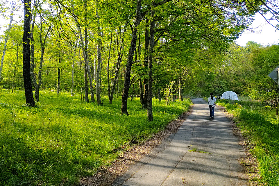 ウォーキングの景色。霧が立ち込めているが空が明るい。村では晴れているだろう。今日は庭仕事日和だ。