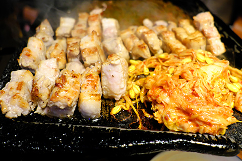 日本人のアルバイトらしきおねえさんが焼いてくれたサムギョプサル(豚の焼肉)