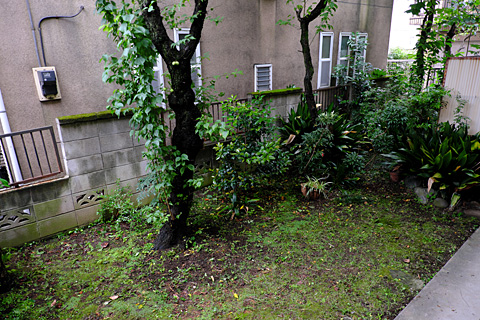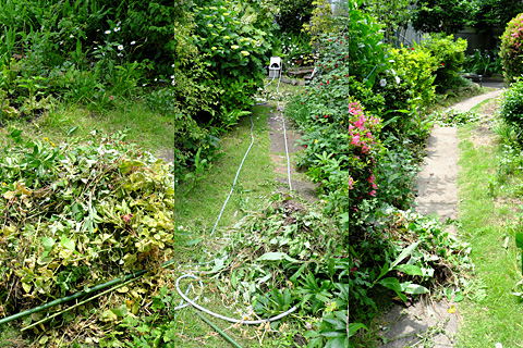 雨が上がって幡ヶ谷の庭の草取りを一気にした。しらべ荘に比べれば土は柔らかいし,何より狭い。小一時間でこの通り。