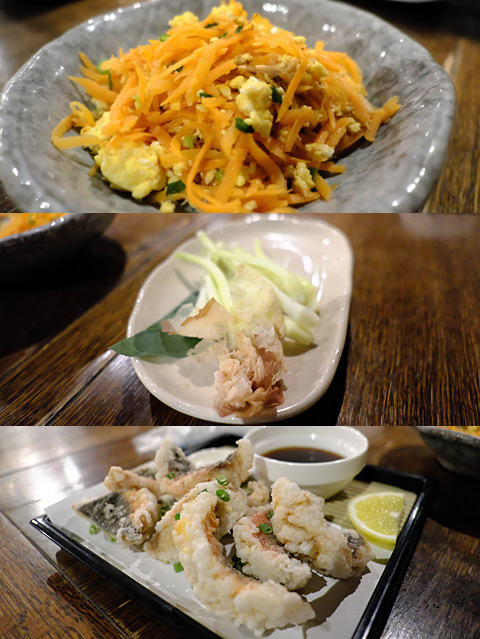 にんじんシリシリ,島らっきょう,グルクンのから揚げ。