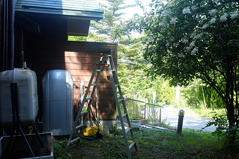 玄関のコンクリートが汚れる原因が分かった。垂木のタールが,夏になると溶けて表面に染みだす。宅配の人がそれを知らずに踏んでしまっていたというわけだ。さて,どう対策するか…。