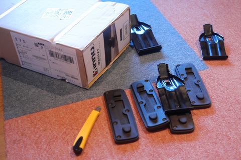 ミズイロライフにキャリアベースを取り付けてルーフボックスを積もうという計画。