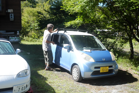 なおみは草取りをし,ボクは引っ越し前に切り倒した木を切り分けて車に積んだ。渋谷区ではごみに出せないので,しらべ荘に運んで薪にしようという算段である。片づけをムリしたのがいけなかった。なおみが体調を崩した。熱中症かもしれない。