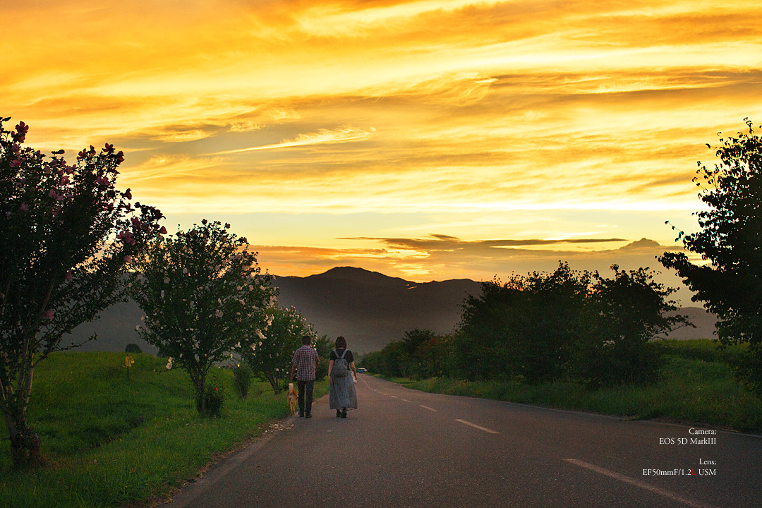 少々肌寒くなってきた朝のウォーキング。どういう空気の状態によるのだろうか,二人の吐く息が白い。
