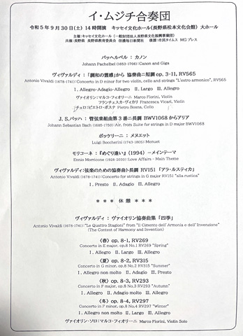 この日のお目当てはこれ,イ・ムジチはイタリアの歴史ある合奏団でバロック音楽を得意とする。なおみがずっと聴きたがっていた楽団の日本公演である。