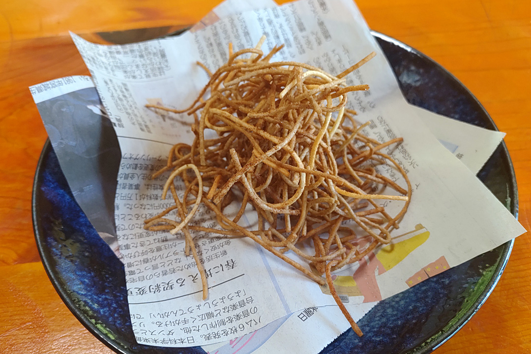 お昼にうっかり茹で過ぎてしまった蕎麦を山菜天のついでに揚げて、軽く砕きながらシナモンシュガーをたっぷり振ったら、ちょっと昭和なおやつができました。