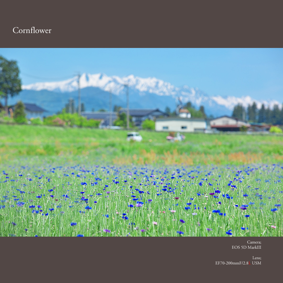 矢車菊…欧州からきた麦畑の脅威もすっかり安曇野の初夏の風景に馴染んできた。農家でも駆除をあきらめて休耕地をこの外来種に譲っているように見える。