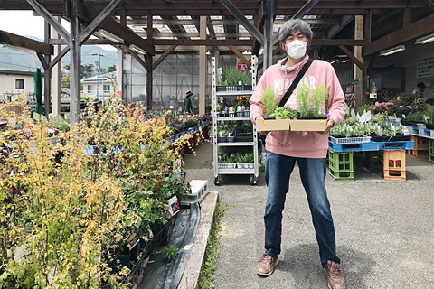 なおみが帰る前に母を連れて花苗を買いに行く。