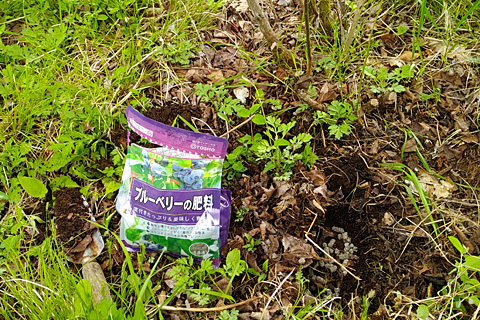 野菜の苗はなおみに任せて、ボクはこちら。ブルーベリー専用の肥料はアルカリ性を嫌うブルーベリーのために酸性に調整してあるらしい。けっこう高い。