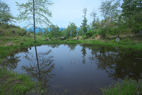 同じ構図ばかりになるが、水鏡と残雪の季節、こうなるのは仕方ない。