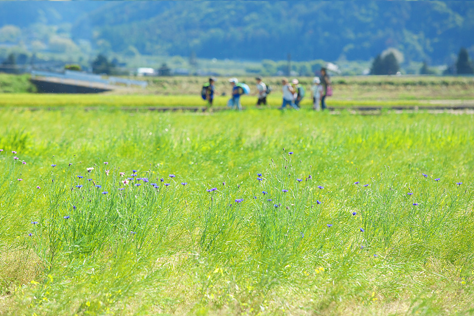 二人で田植え中の方に矢車菊のことを聞いてみた。