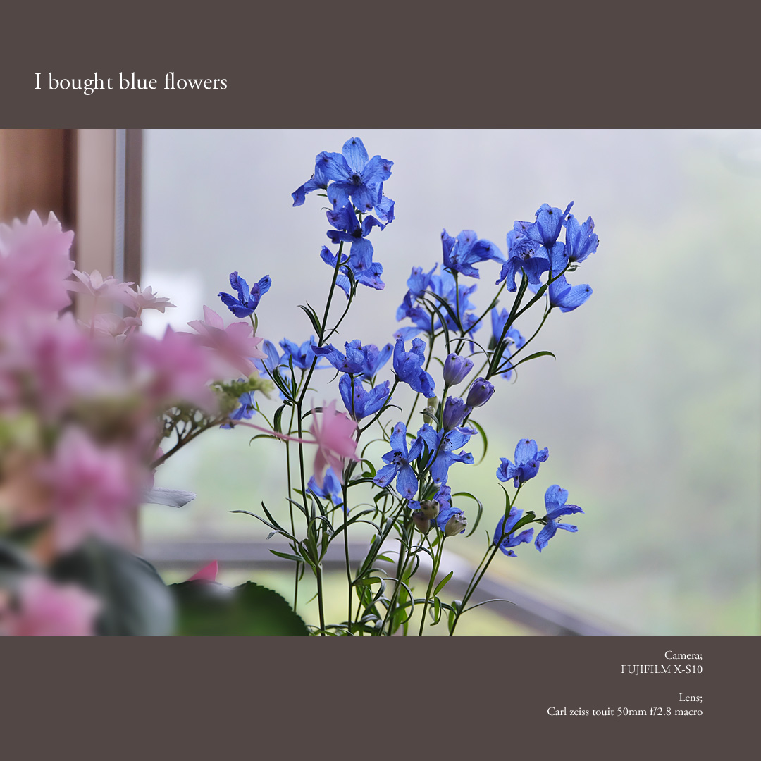 スーパーで青い花を買った。レジは30代くらいの若い女性でにこにこしながら切り口を包み丁寧にテープを貼ってくれた。180cmを超える大男が350円の切り花一つを握りしめて並んでいたのがよほど可笑しかったのか、微笑ましかったのか…とまれ彼女の笑顔のおかげで楽しい買い物になった。今日はタローの月命日。