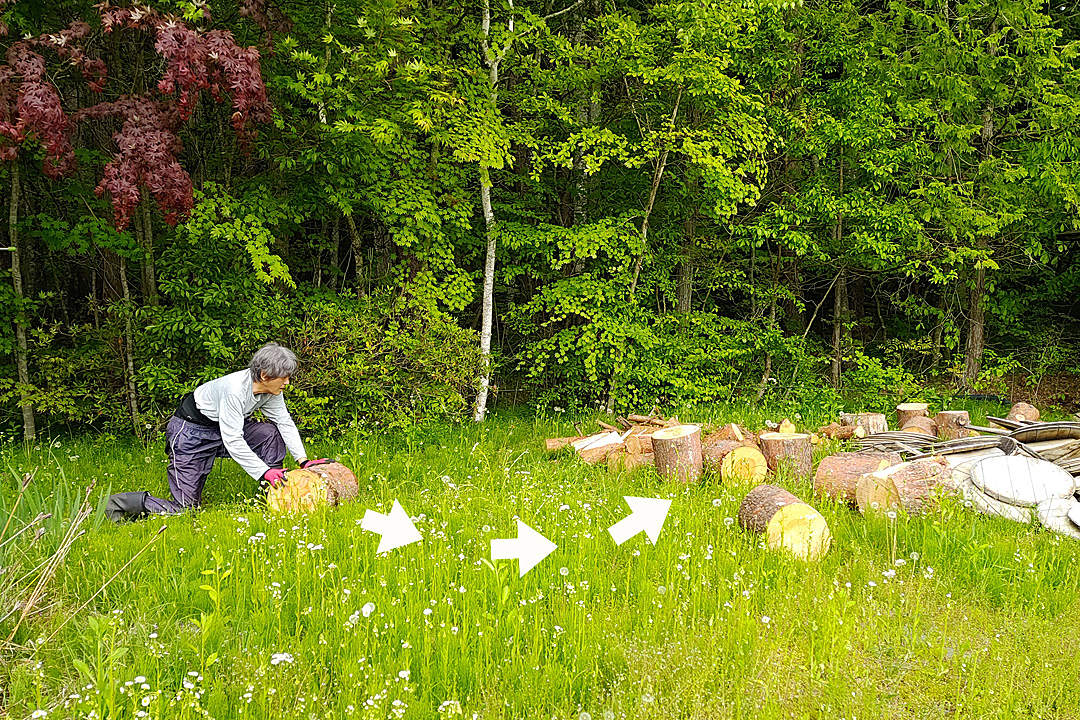 Mさんが玉切りしてくれた丸太を8本運んだ。