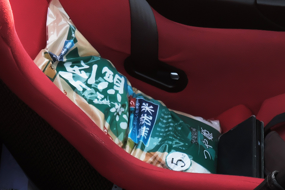 最安値だったホームセンターで買った無洗米つや姫5kg…買い物が多くてトランクに入りきらなかった。