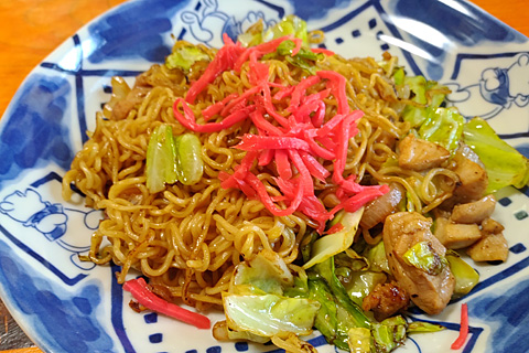 業務スーパーで税込み39円のインスタントラーメンをたんと買い込んである。インスタントラーメンでもスープは自分で作るボクとしてはチャルメラやサッポロ一番などブランド品は必要ない。さて、その麺をアルデンテ直前まで湯がいてから熱したフライパンで外側だけ焼き付けて焼きそばにする。