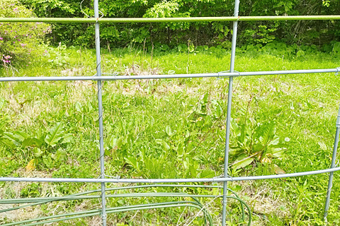 畑に侵入したシナノギシギシ。