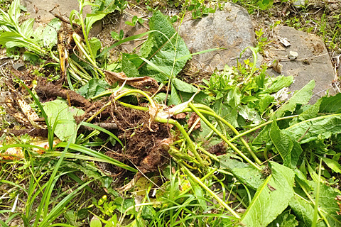 根は地表部分の5,6倍ではきかないかもしれない。どんなに鍬を振るっても全部起こすことはできない。