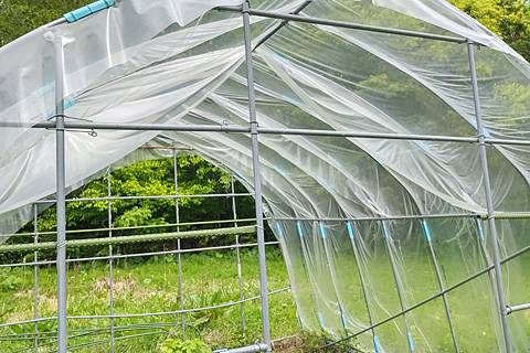 火曜の夜にまとまった雨が降ったのだが、今年は屋根をビニールで覆ってしまったので雨が当たらない。