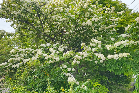 見上げるとオオデマリが満開である。