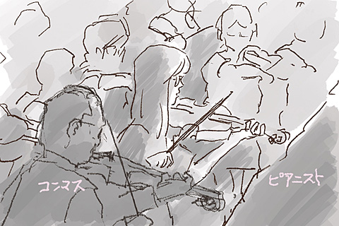 …したつもりだったのに本番のときに、コンマスが椅子をずるっと前にずらしたので、母の席からは陰になってしまった。オペラグラスで覗くときはぐっとボクの席まで寄らなければならない。母は耳がほとんど聞こえないのに、コンサート会場の音は聞こえるようだ。ときどき指でリズムを取るようにしたりする。
