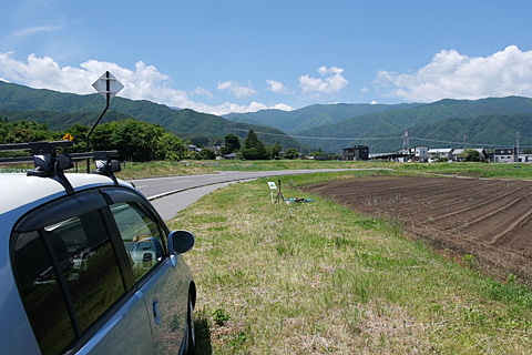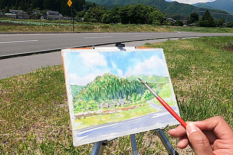 今日は土曜なのでなおみが昼までで上がる。写生は近場で朝日村。