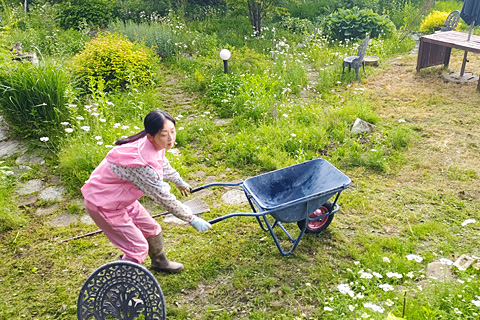 …と言ってなおみが庭に出る。部活もオケの練習もない日曜日だが、ほとんど一日中、持ち帰りの仕事と練習に費やしている。庭仕事は少しのストレス解消になっているのだろう。