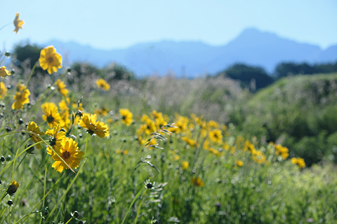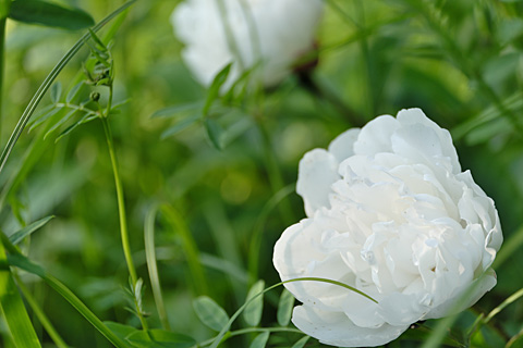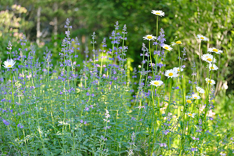 午後、かまびすしい森の声、声はすれども姿は見えず。レースフラワーが揺れている。